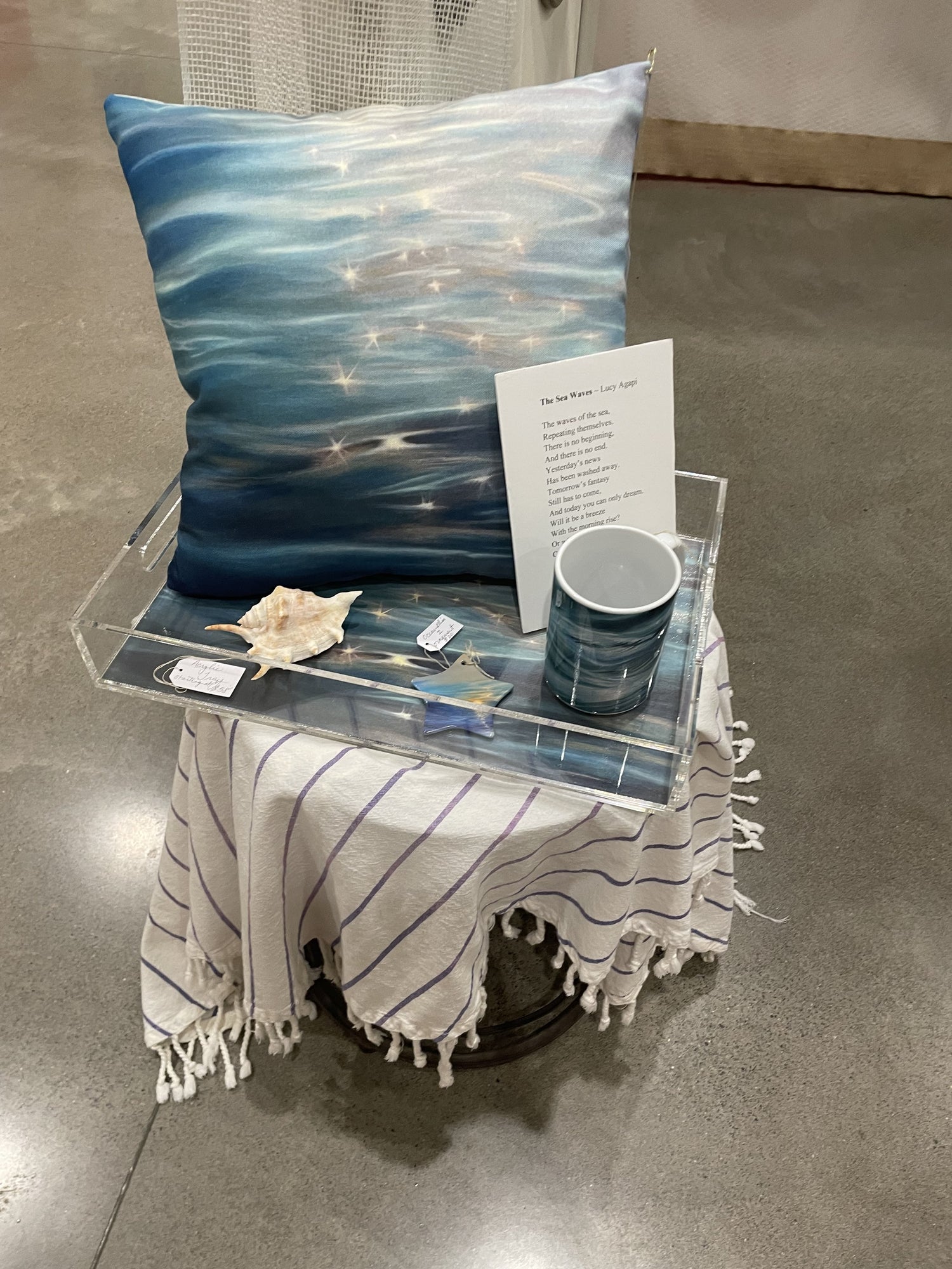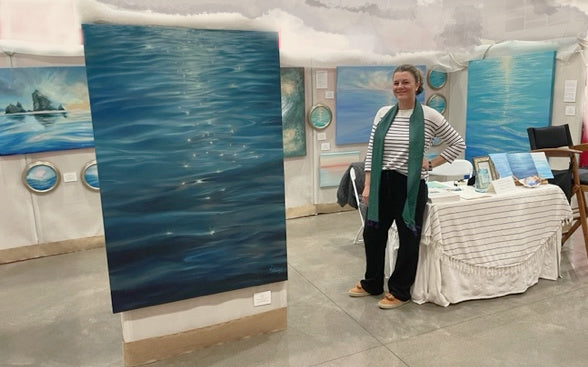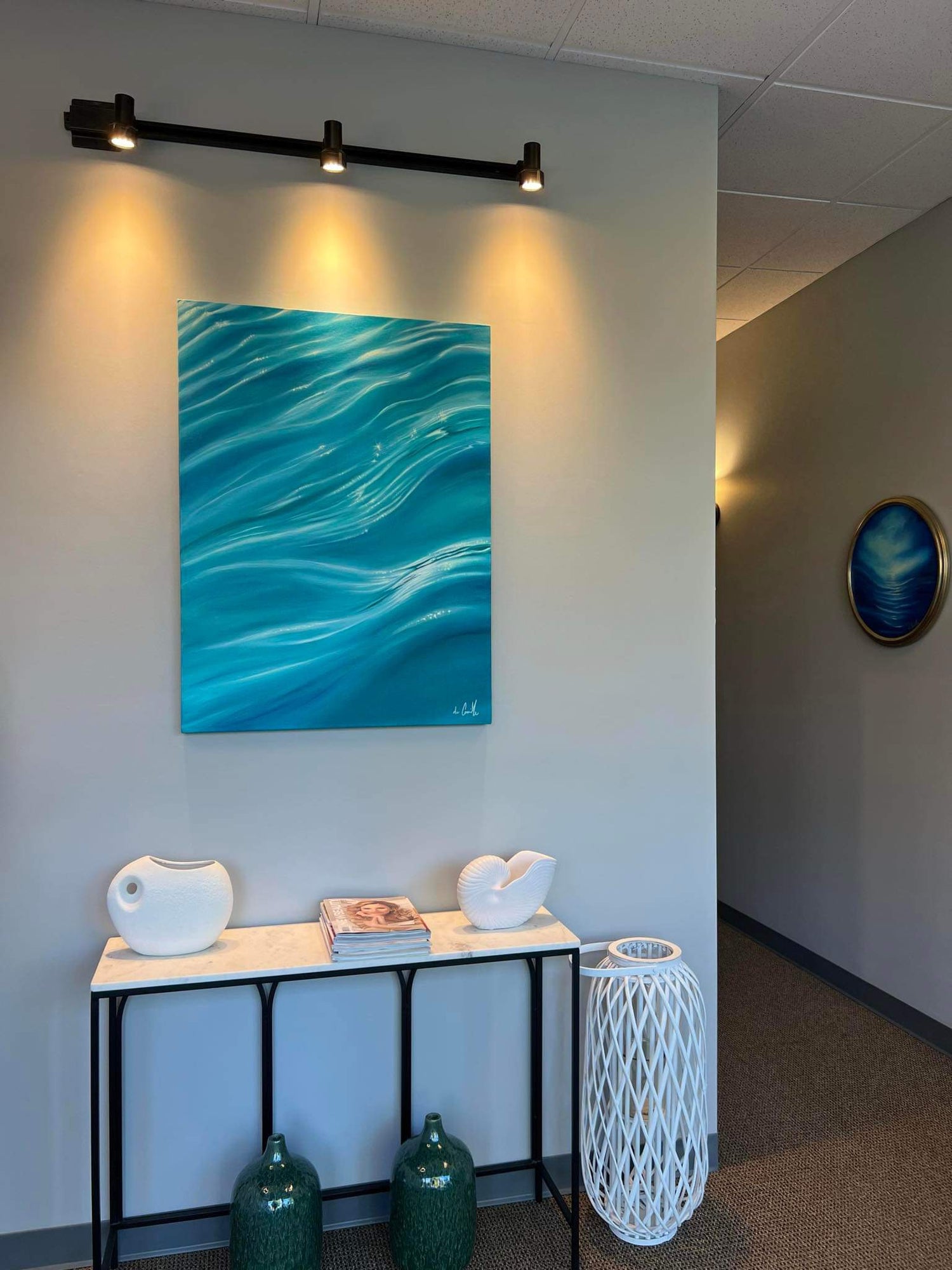 Bliss' and 'Porthole' Collections at the Providence Hospital in Portland during the Summer of 2023. Her work can also be found in luxury Day Spas and clinics. She is forever content painting the ocean yet is keen to experiment with painting the foggy landscape of the Pacific Northwest, where she resides.