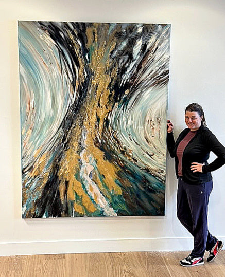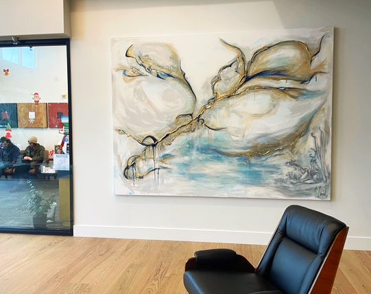 HerOcean Bliss and Porthole collections were exhibited at Providence Hospital in Portland during the summer of 2023, where they were met with strong demand. Her work is also placed in luxury day spas and professional clinics, reflecting its broad commercial appeal. While her practice is deeply rooted in ocean-inspired imagery, she is equally drawn to richly textural abstract compositions and atmospheric interpretations of the fog-softened landscapes of the Pacific Northwest, where she resides. Embracing creative freedom and versatility, she enjoys exploring a range of styles and themes and is highly receptive to custom commission projects for commercial and private spaces.