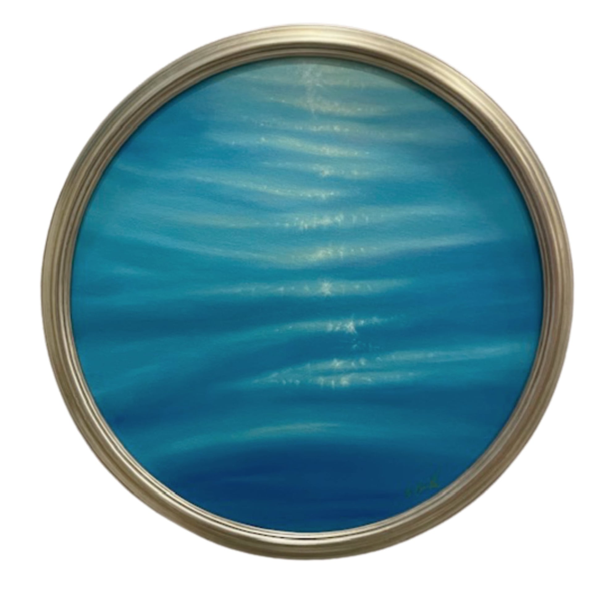 Original mixed media oil painting of the ocean, as seen through the champagne-pewter Porthole frame. Size 20"